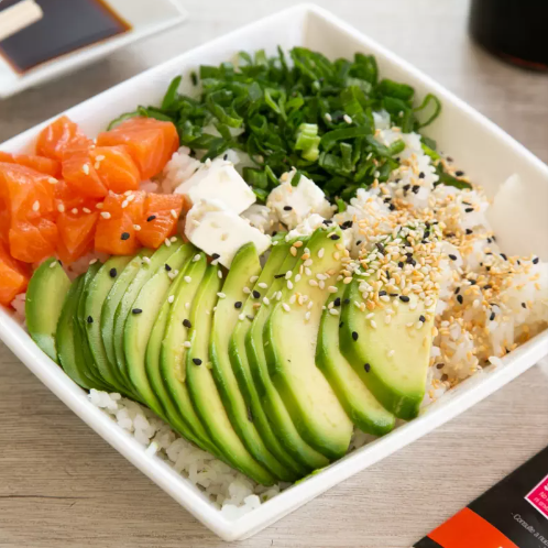Base de arroz, Salmon, Queso Crema, Palta, Cebollin.
